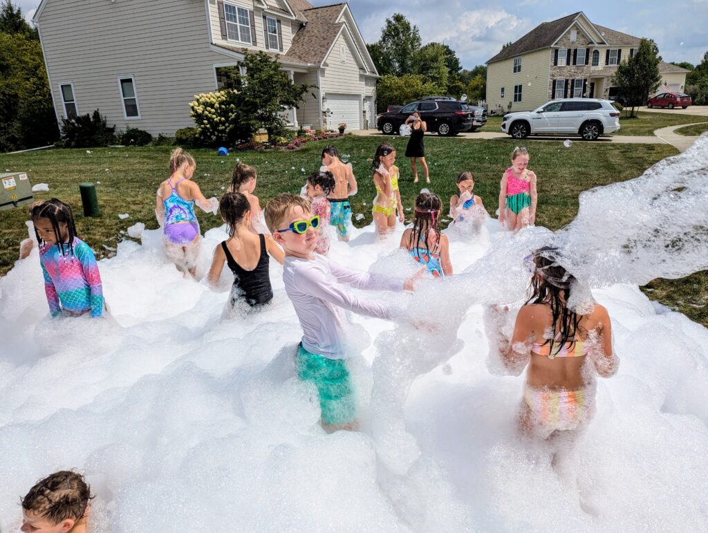 Foam parties are ideal for backyard birthday parties, reunions, church/school, daycares, and even corporate events! There is even an option to add GLOW for nighttime parties or a splash of color for parties such as Gender Reveals!